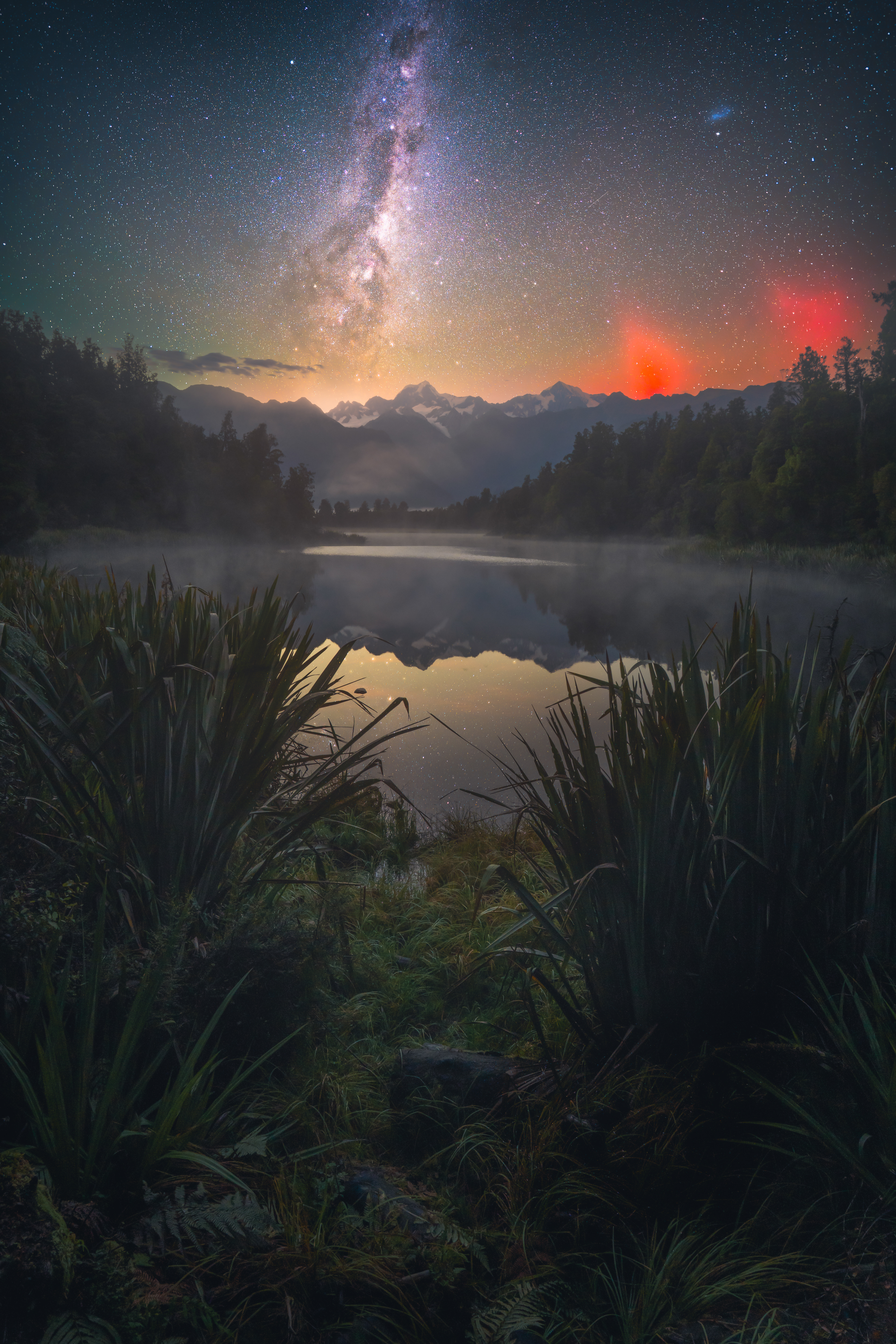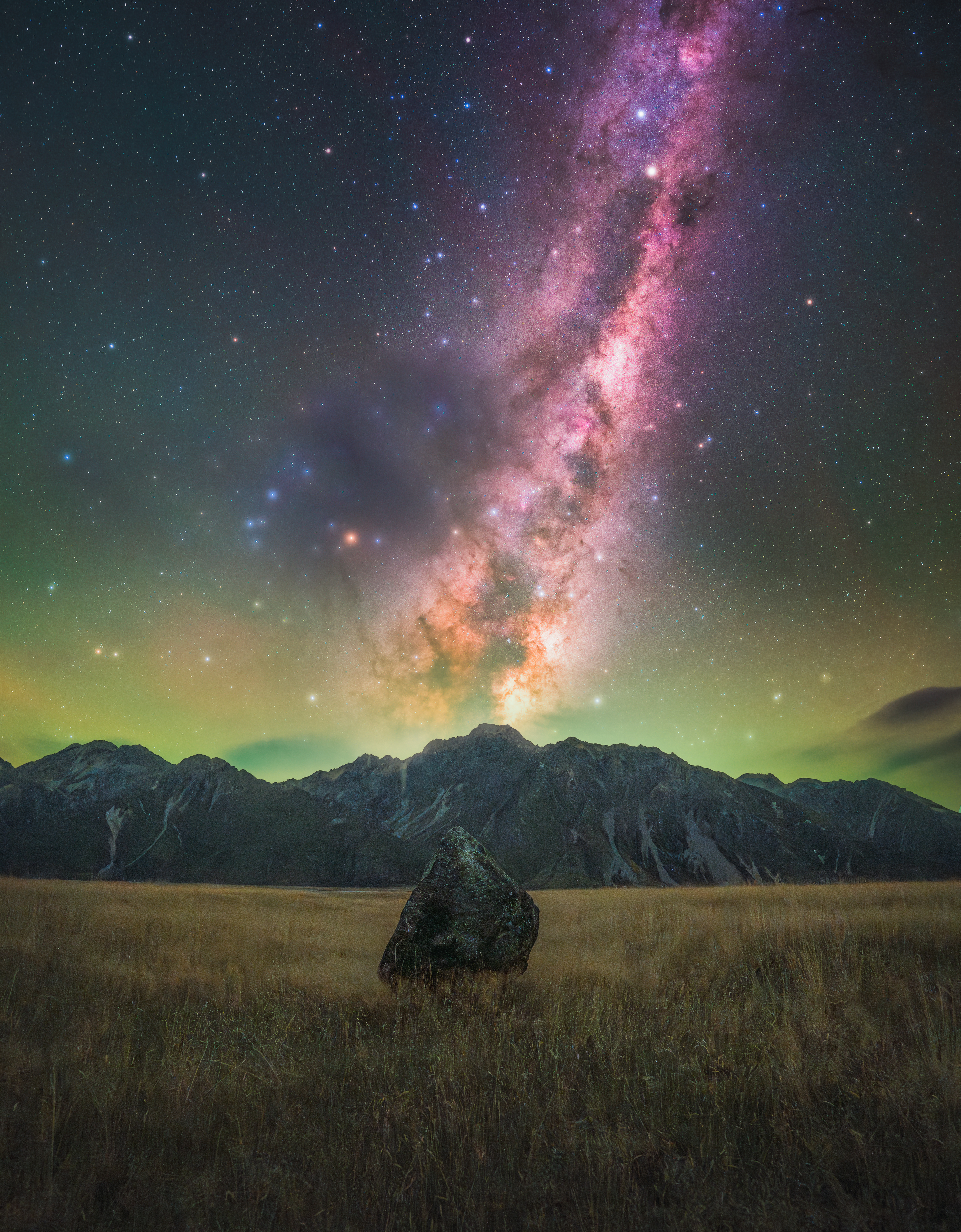 Milky Way, Aurora, Zodiacal light and shooting star at Castle Hill